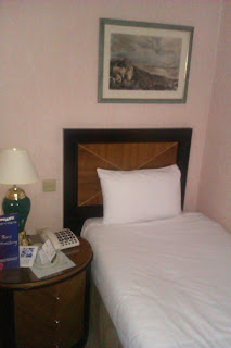 The hotel was close to the bus stop and was pretty fancy. My room was on the first floor and fairly small.